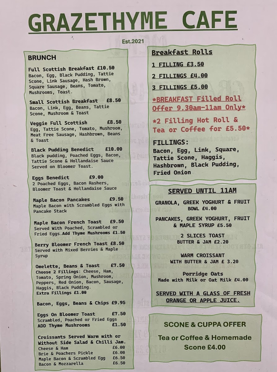 Welcome to Graze Thyme Cafe, an inviting spot located in the heart of Stranraer. This café beckons with a diverse menu that emphasizes hearty and wholesome options, perfect for brunch enthusiasts. Start your day with their renowned Full Scottish To Go, complemented by enticing extras like homemade chips and onion rings, all crafted with love by owner Gill.